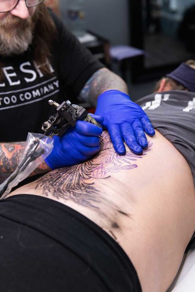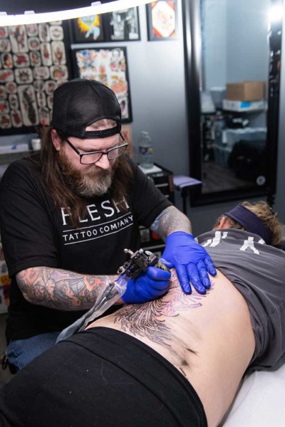 Harford County’s first upscale tattoo studio. Flesh is professionally managed so that our artists can focus their time and talents on you the customer. We pride ourselves on offering the most sterile, drug free and friendly environment in the area. Our customer service is second to none and we invite you to come see why.
